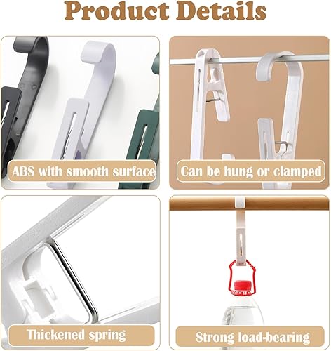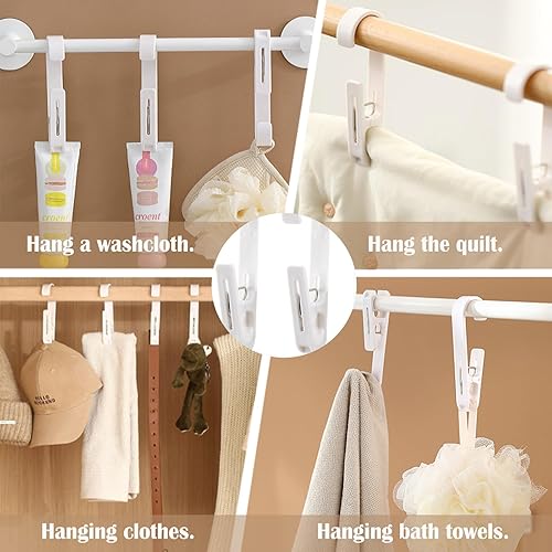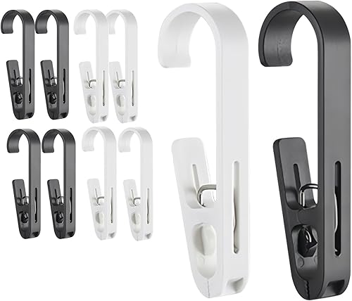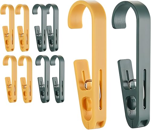 Realand Lot de 10 grandes épingles à linge avec crochets – Crochets à linge robustes avec clips, clips réversibles pour suspendre serviettes, rideaux de douche, bottes, chaussettes, peignoirs