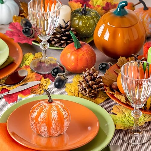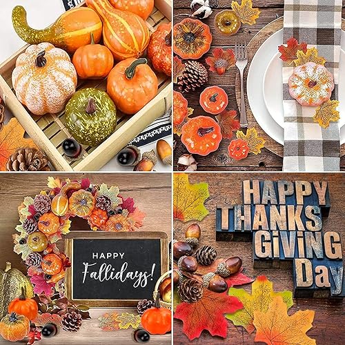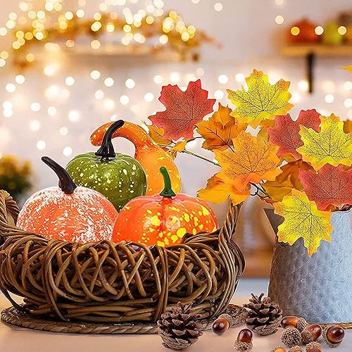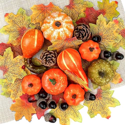 ENAIAH 50Pcs Ensemble de Décoration d'automne Mini Citrouille Décoration Feuilles d'érable,Cônes de Pin,Glands, pour Halloween Thanksgiving Décoration (50)