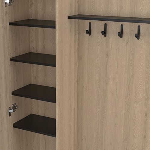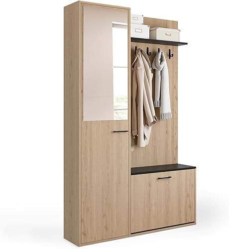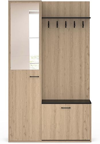 IDMarket - Vestiaire d'entrée rangement chaussures avec miroir et étagères MAHAUT 1 porte effet bois et noir