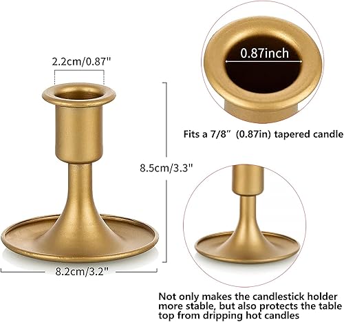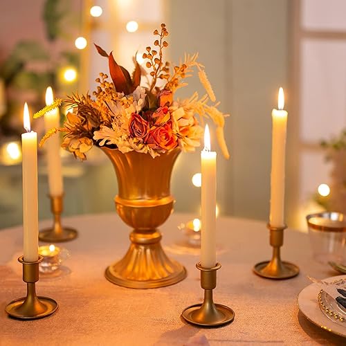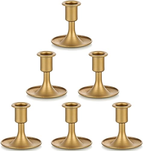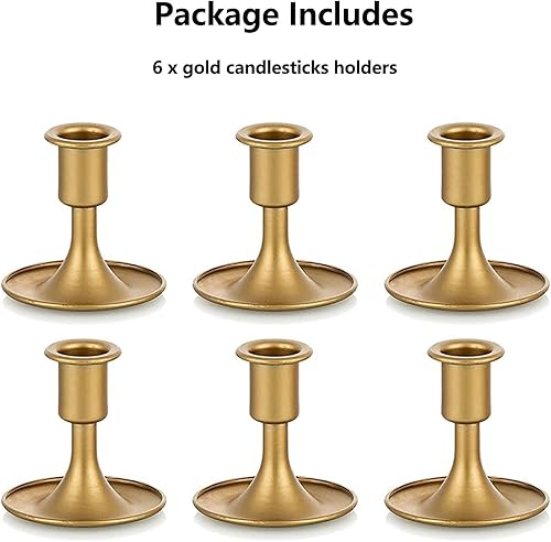 Bougeoirs en Or Bougeoirs : Hewory 6 Pièces Bougeoir Conique en Métal, Bougeoirs Vintage Bougeoirs en Laiton Épais Dorés pour Bougies de Dîner Coniques Pièce Maîtresse de Table de Noël Maison