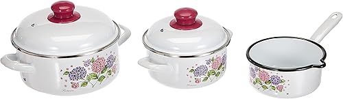GSW 189965 Hortensia Lot de 5 casseroles en acier émaillé et plastique Blanc