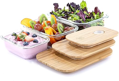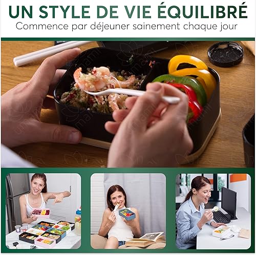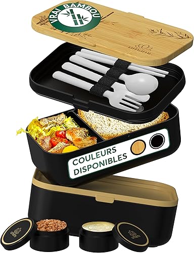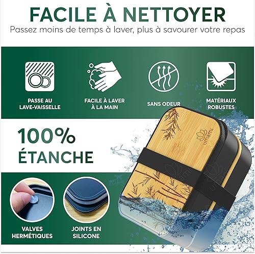 Umami Lunch Box En Verre & Bambou, Boîte Bento Japonaise Hermétique 1 Étage, Micro-ondes, Four & Lave-vaisselle, Zéro Déchet, Sans BPA