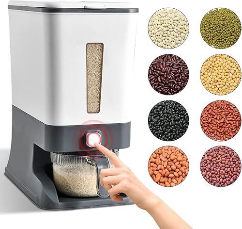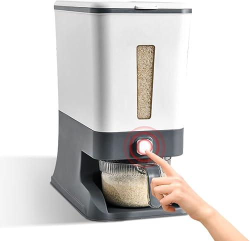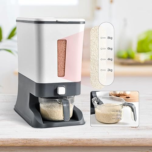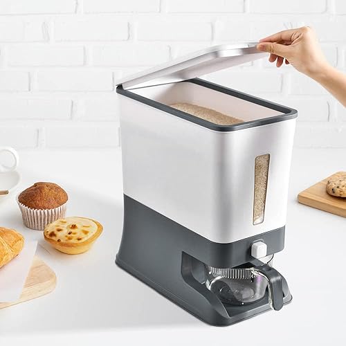 Beowanzk Distributeur Cereales,Distributeur de Riz 10kg,Rice Dispenser,Stockage Riz,Boite Rangement Cereales,Boite Conservation Cereales Avec Couvercles et Tasse à Mesurer de Riz Gris