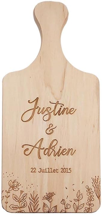 Ma Fabrique Perso - Planche Apéro En Bois - Prénoms et Date Fleurs - Personnalisable