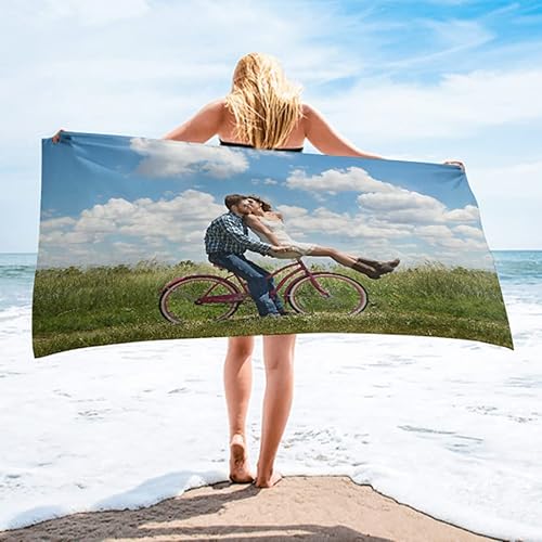 LOMDEM 150x200 cm Serviettes de Plage Personnalisées avec Votre Photo Nom Serviettes Microfibres Serviettes pour Animaux Couples Familles Logo Serviette de Sport Serviette de Surf