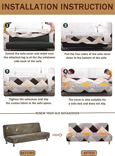 WWQQKJ Housse de canapé sans accoudoirs 2/3 Places Extensible, résistante aux Taches for canapé-lit, Lavable, antidérapante, Pliable, Clic Clac, 20 Couleurs(Orange,190-220cm)