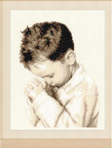 VERVACO Point De Croix Compté Kit Tableau Complet Set GARÇON PRIANT De Broderie Loisir Créatif Maison Decoration Cadeau DIY ca. 21 x 28 cm Counted Cross Stitch Embroidery, Cotton, Multicolore