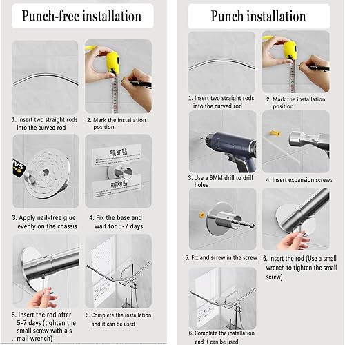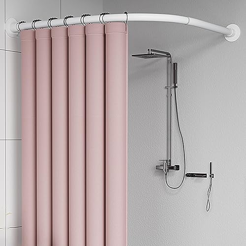 APHTOCF Tringle De Rideau De Douche en Forme De L, 70 X 70 Cm Tringle Rideau Angle Blanc, Barre Rideau Douche INOX sans Perçage/Forage, pour Salle De Bain,Douche,Baignoire,vestiaire