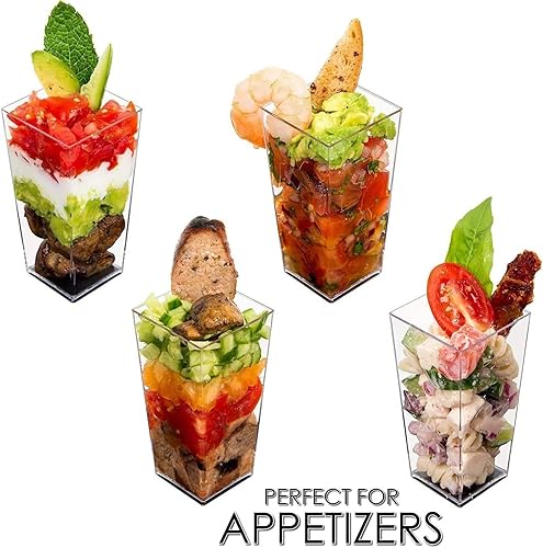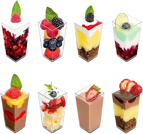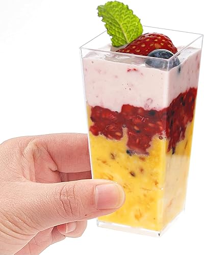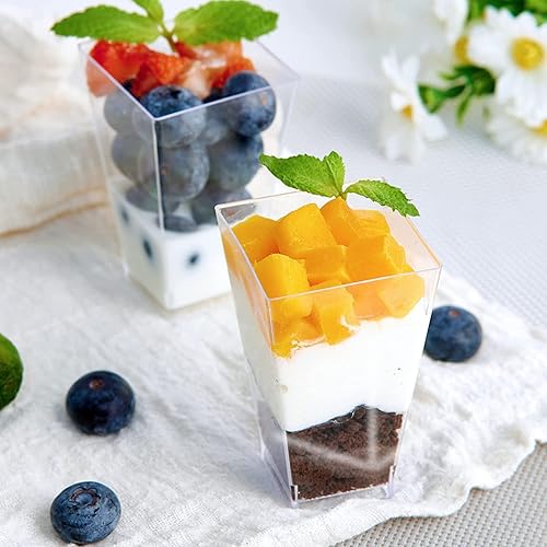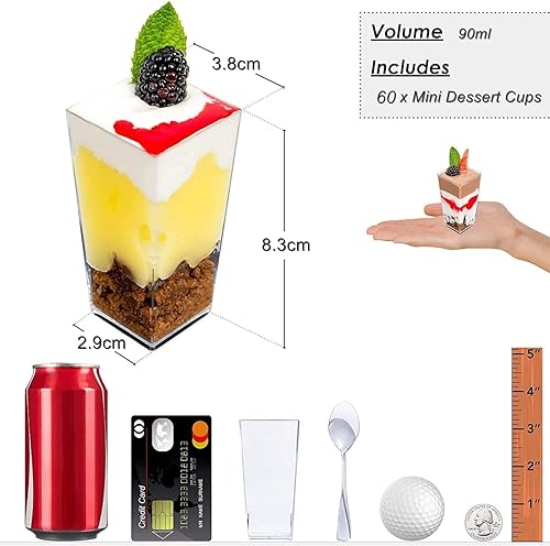 KAHEIGN 60 Pièces Mini Coupes à Dessert, 90ml Carré Haute Gobelets à Dessert en Plastique Coupe Apéritif Parfait Clair Bol de Service Réutilisable pour Fête de Mousse Pouding Dessert (3,8 x 8,3cm)