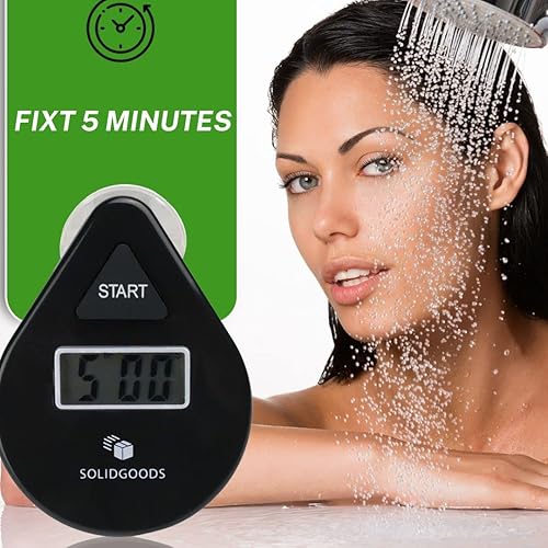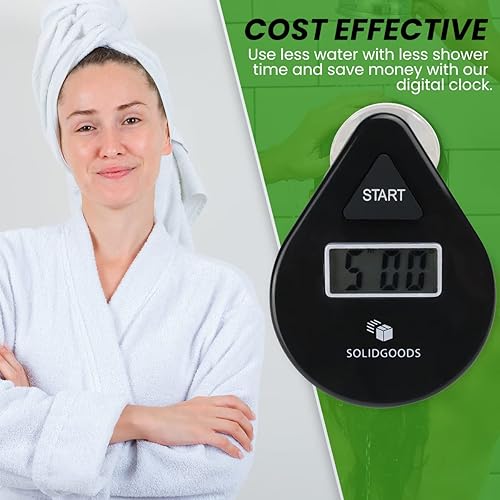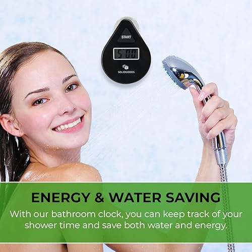 SolidGoods Salle De Bain Horloge Murale Digitale Étanche, Minuteur Douche Coupe Eau Réglable en 5 Minutes, Horloge Salle De Bain Ventouse Salle de Bain, Chronomètre Numérique avec Piles, (Noire)