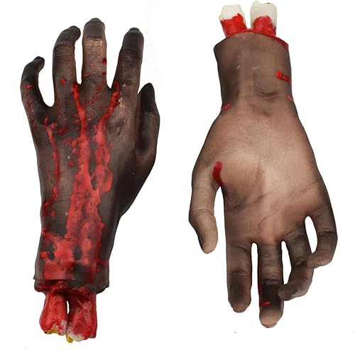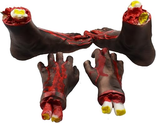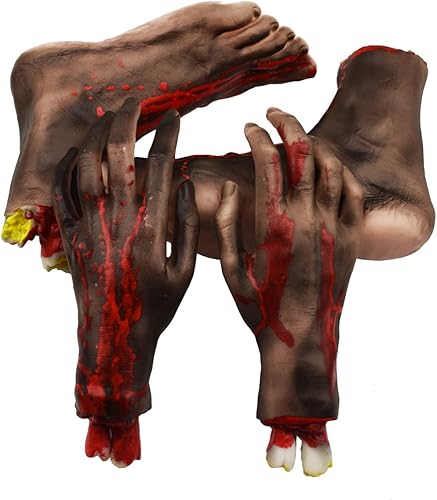 XONOR Halloween Séparé Mains Ensemble de Pied Effrayant Sanglant Parties du Corps Brisées Halloween Accessoires Décorations, 4 Pièces (Pieds & Mains) (Couleur de Peau)