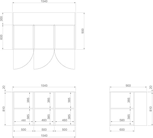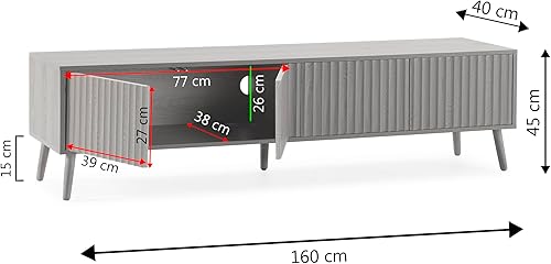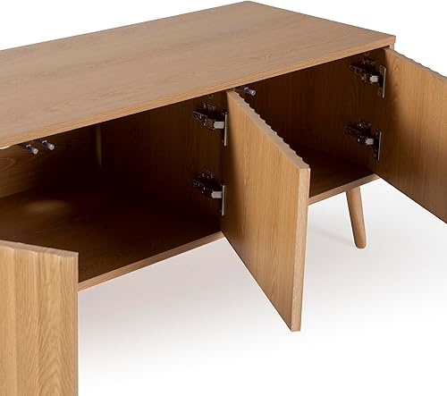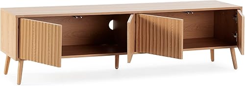 HOMN LIVING Meuble TV Lluvia 4 Portes Coloris chêne, 160 cm (Largeur) 40 cm (Profondeur) 45 cm (Hauteur)