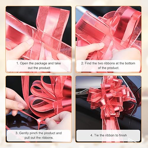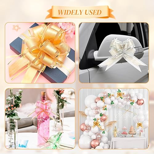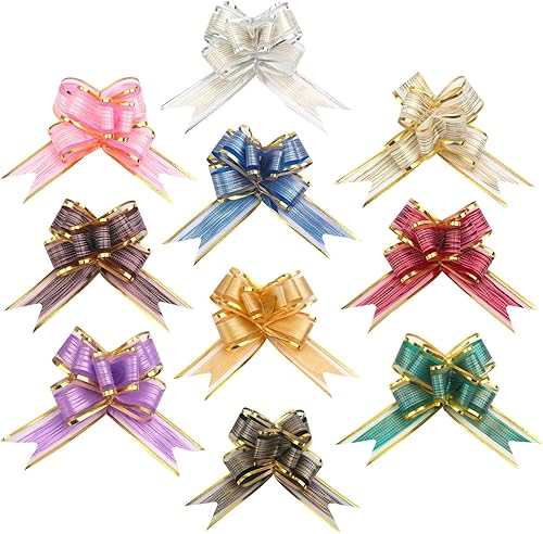 JRILUO Gros Ruban Noeud Cadeau Emballage, Lot de 10 Grands Décoratifs Nœuds Papier Cadeau (20 cm), Nœuds À Tirer en Ruban Couleur Métallique Mate pour L'emballage de Cadeaux Banquets Mariages Fêtes