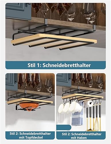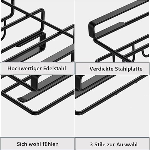 WEIKA Support pour planche à découper en acier inoxydable sans perçage - Noir - Organiseur de cuisine sur l'armoire - Ustensiles de cuisine comme étagère télescopique pour le rangement et la sécurité