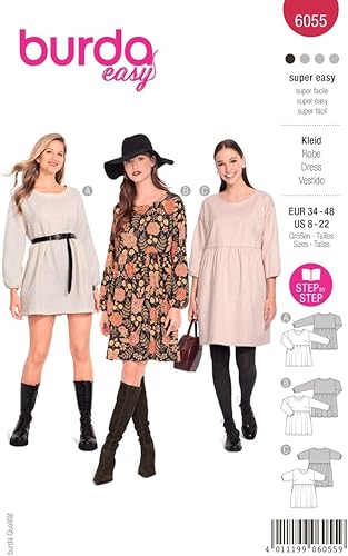 Burda B6055 Patron de Couture, Papier, Blanc, 34-48