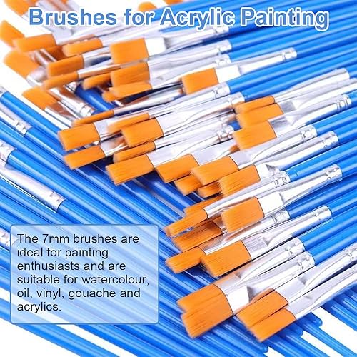 Lot de 60 Pinceaux Acrylique 7mm - Petits Pinceaux en Vrac pour Peinture, Enfants, Graffiti et Loisirs Créatifs