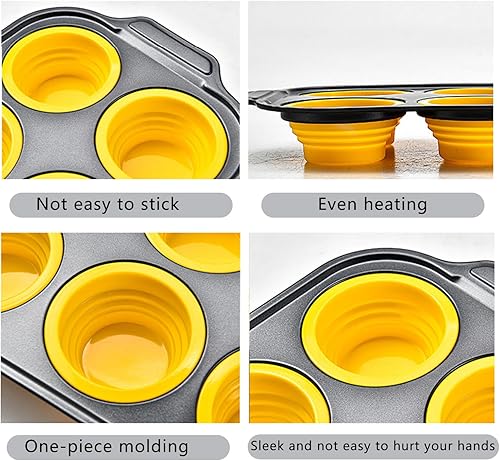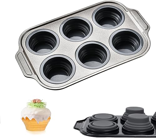 Moule à muffins en silicone, antiadhésif, avec cadre en métal solide, pour un démoulage facile des muffins, passe au lave-vaisselle, pour 6 muffins, gris, 31 x 18 cm
