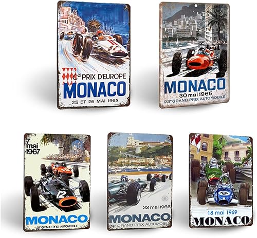 5 PièCes Grand Prix De Monaco Signalisation Logo éTain Course Vintage Signalisation Voitures Panneaux MéTal 20x30cm 083