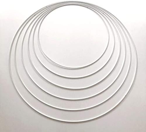 Lealoo Lot 6 Grands Cercles métal Blanc Ø 35 cm à 60 cm, Anneaux en Epoxy pour Attrape rêves, Abat-Jour