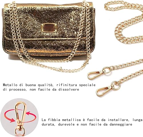 Voarge Lot de 2 chaînes de rechange pour sac à bandoulière pour femme, avec 2 boucles (or et argent), chaîne de rechange pour sac à bandoulière.