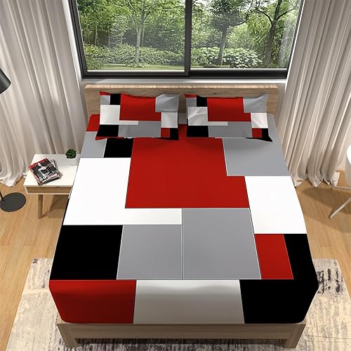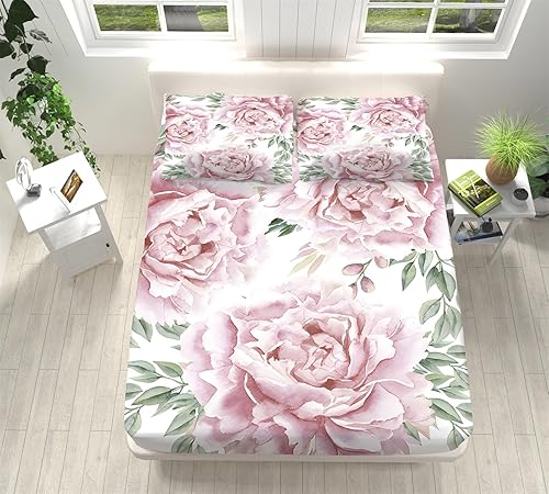 Drap Housse 140x190 cm, Fleur Pivoine Rose Parure de Lit Microfibre BrosséE Douce espirant Résistant Rides Drap Housse Matelas Enfants Protection de Matelas 30cm avec Taies d'oreiller x2