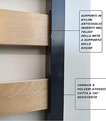Sommier double 160 x 190 cm, structure en fer avec lattes, 100 % fabriqué en Italie