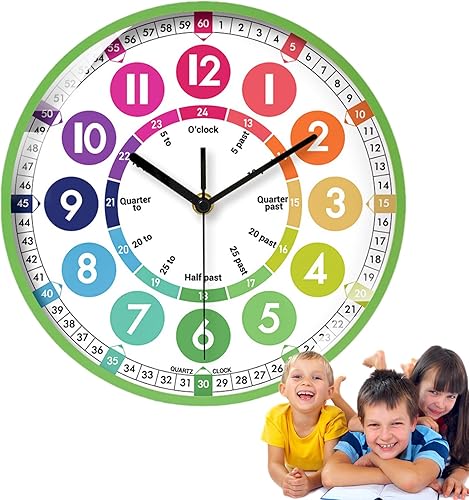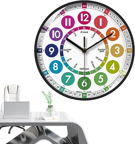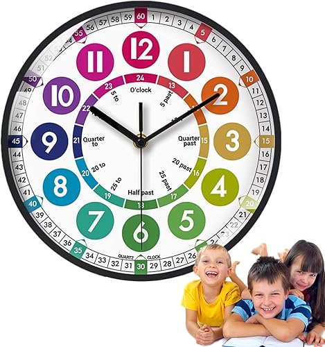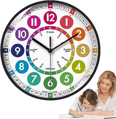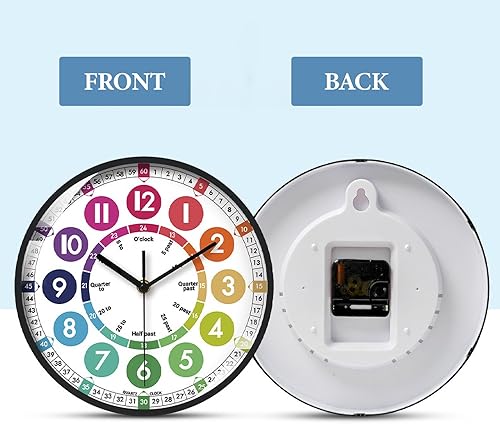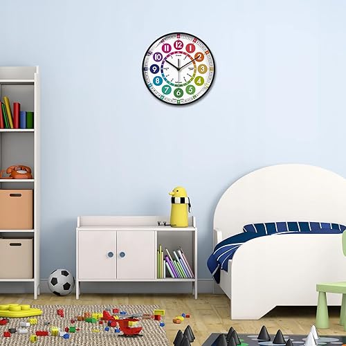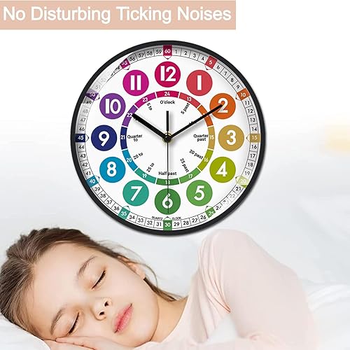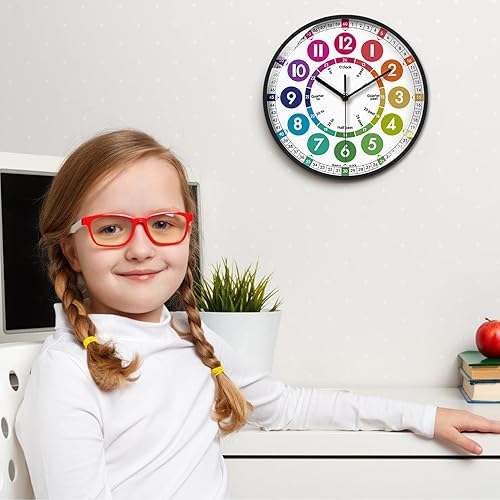 Horloge d'apprentissage pour de 10 pouces: horloge murale silencieuse qui ne glisse pas, givrée facile à lire | Horloge éducative à batterie pour , décoration de chambre colorée bri
