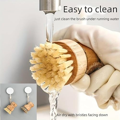 Lajiakoy Brosse en Bois, Brosse pour Casseroles, Brossepour Vaisselle, Brosse a Fruits, Brosse pour Évier, Utilisée pour Nettoyer Les Casseroles, Les Bols, Les Éviers de Cuisine, Etc. (2 Pièces)