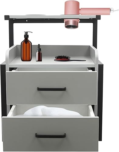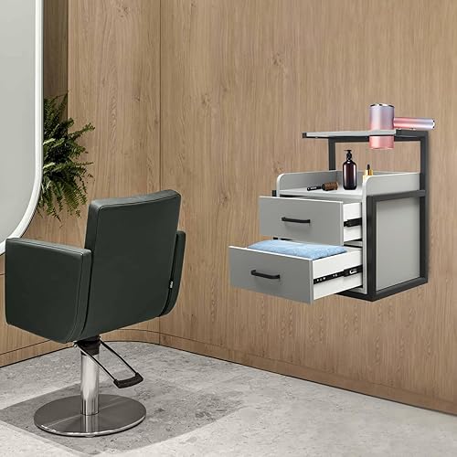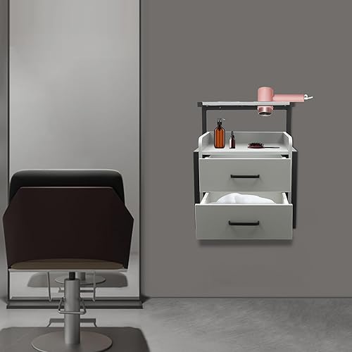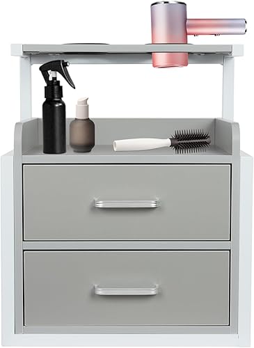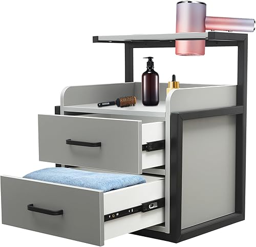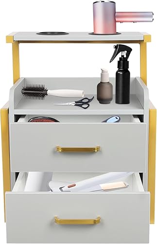 NoneDanGee Armoire murale multi-usages pour salon de coiffure avec support de sèche-cheveux et tiroirs, accessoires de coiffure, armoire murale de beauté, table de chevet, 40 x 30 x 48 cm (doré)