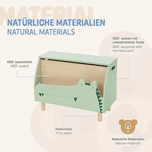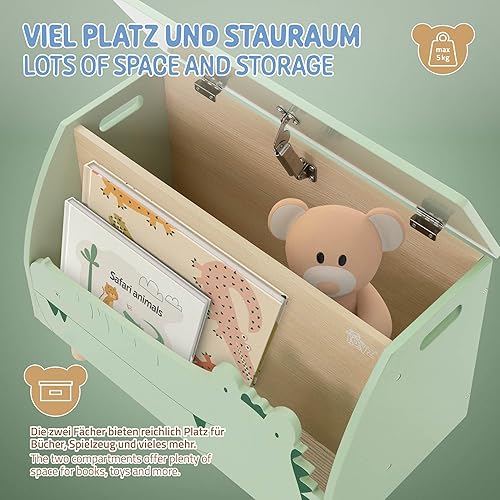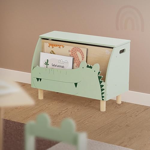 Joyz Étagère pour Enfants avec Compartiment Ouverte et Caisse, Design Crocodile, 60x30x44 cm, Étagère à Livres en Bois, Étagère à Jouets avec Couvercle, Meuble de Rangement pour Chambre d’Enfants