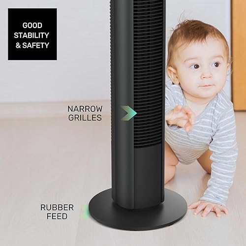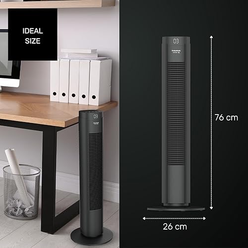 TAURUS BABEL II RCH - Ventilateur tour, 50W, hauteur 86cm, 4 vitesses, 3 modes de fonctionnement, minuterie 7.5h, oscillant, tactile, affichage digital, télécommande