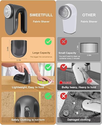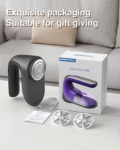 SWEETFULL Rasoir électrique anti-peluches - Rasoir à laine à 3 vitesses - 6 têtes de lames - Avec câble de charge de type C - Pour vêtements, canapé, tapis et meubles