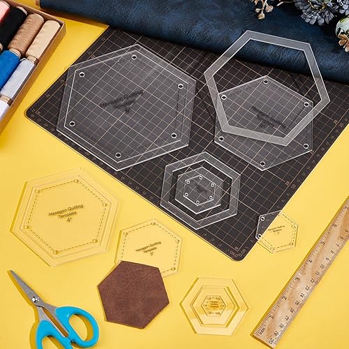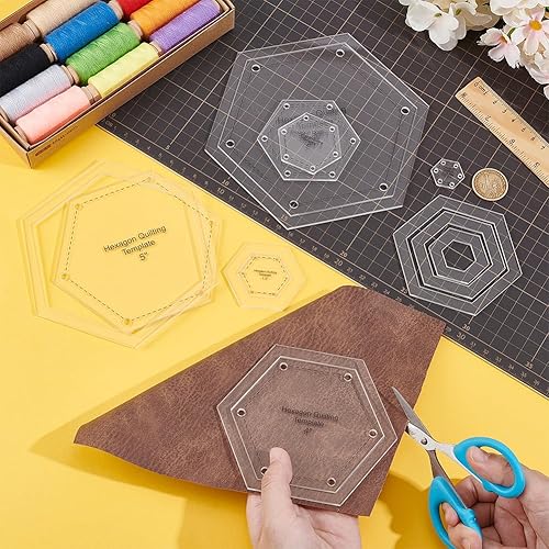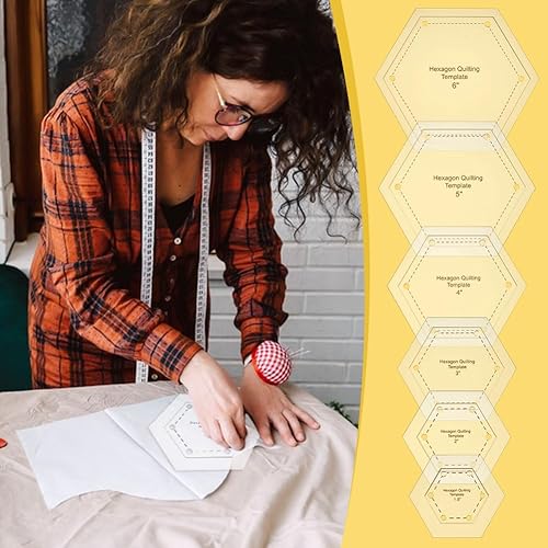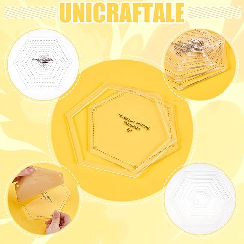 UNICRAFTALE 7pcs 7 tailles Règles de Couture Règle Hexagone Quilting Gabarit de Découpe pour Patchwork Couture à la Main Acrylique Pochoir Transparent pour Mesurer la Coupe Quilting DIY Broderie 1~6'
