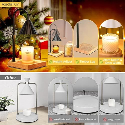 Redefun Lampe Chauffe-Bougie, Compatible avec Les Bougies en Pot électrique Vintage, Cadeau pour Maman, décoration d'intérieur, à intensité Variable pour Cire parfumée avec 2 Ampoules