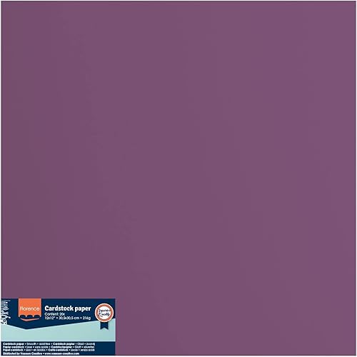 Florence Papier Cartonné Violet Lisse - 30,5 x 30,5 cm - Clematis - 20 feuilles - 216 g/m² - Papier pour Scrapbooking, Carterie, Perforation et Faire Part de Mariage