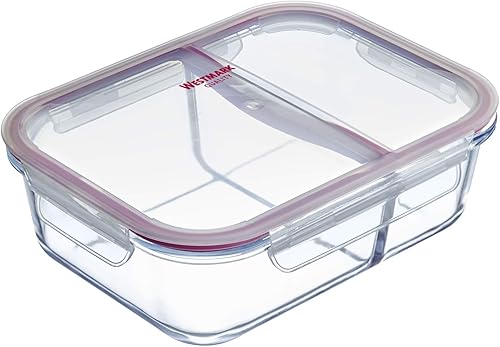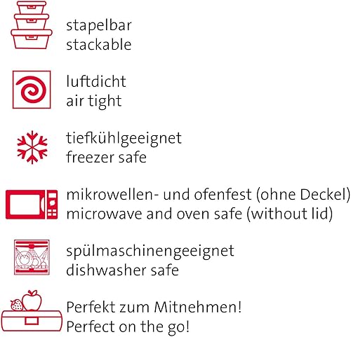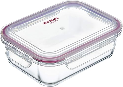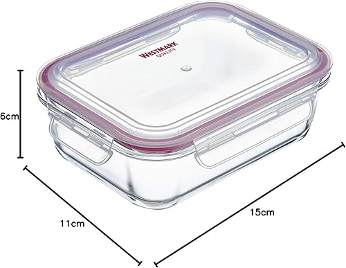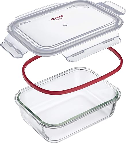 Westmark Boîte de Conservation en Verre, Couvercle Clipsable, Volume: 370 ml, Hermétique, Adapté à la Congélation, Micro-Ondes, Four, Sans BPA, Verre/Plastique/Silicone, Transparent/Rouge, 234122E1