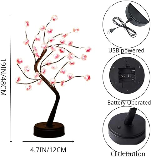 Lampe bonsaï en Fleurs de Cerisier de 45,7 cm avec 36 Branches réglables à Del, Jolies décorations pour Chambre à Coucher, Maison, fête de Noël, Fonctionne avec Piles/USB, Lampe de Table décorative