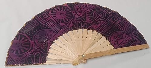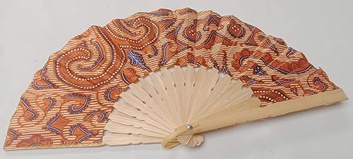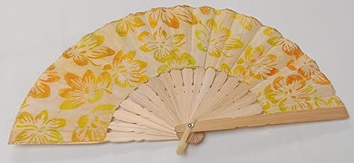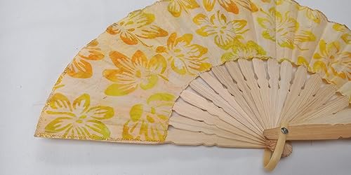 Générique EVENTAIL Fan Fait Main Tissu Batik + Bambou ECO-Responsable Pliable 23CM/43CM (Agrumes)