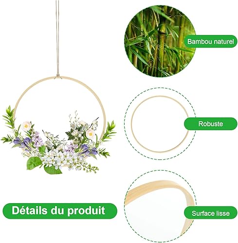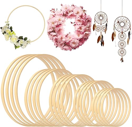 STARVAST 20 Pcs Anneaux de Couronne de Bambou, Anneaux en Bambou Cerceaux, Cercle en Bois pour Attrape Rêve Macramé, Faire un décor de Couronne de Mariage et Artisanat Mural (13, 15, 18, 20, 26CM)