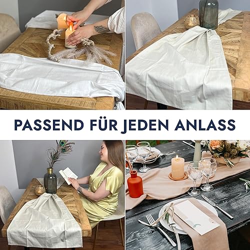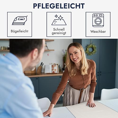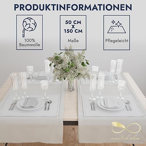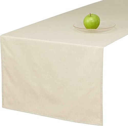 unendlich schoen Chemin de table beige (pélican) 50 x 150 cm en 100 % coton aspect lin - Nappe pour salon et table à manger - Sans plis - Facile à nettoyer