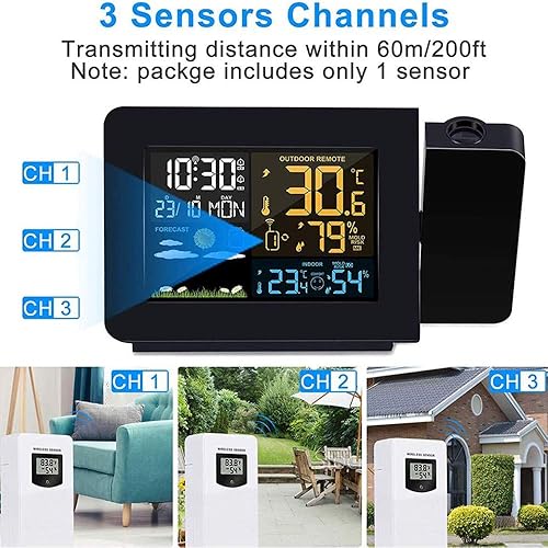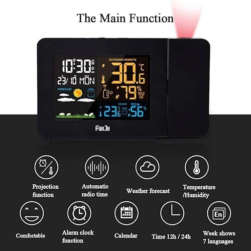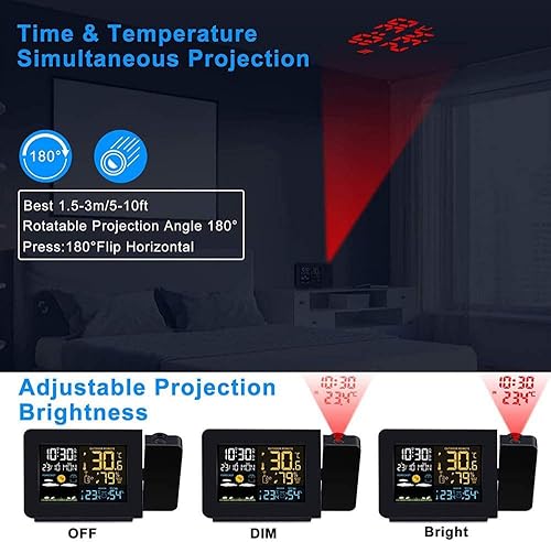 LIMEID Réveil De Projection Numérique, Radio Reveil Projection Plafond, Projecteur Horloge Au Plafond avec Affichage De La Température, Deux Alarmes, Snooze, Couleur Rétro-Éclairage, Météo