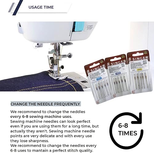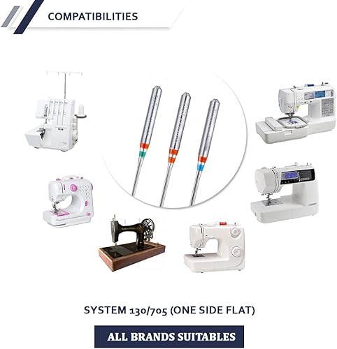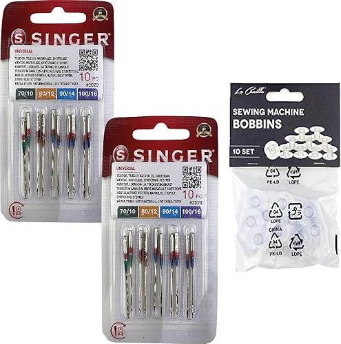 Singer Lot de 20 Aiguilles pour Machine à Coudre Universelle Grosseur 70-80-90-100 pour le coton et les tissus synthétiques 130/705 H Talon plat d'un côté et pack de 10 Canettes Machine à Coudre