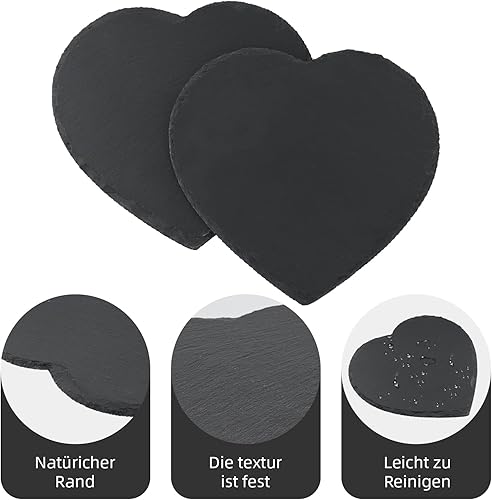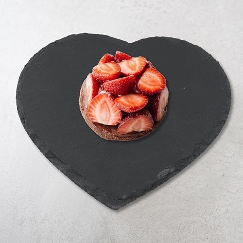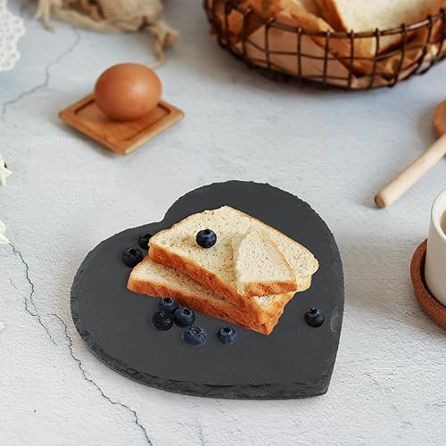Fegat Lot de 2 plateaux de service en ardoise noire avec cœurs en ardoise pour servir et étiqueter, buffet, carré, anthracite