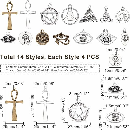 PH PandaHall 14 modèles Breloques mauvais œil, 56pcs croix Oeil de cheval Oeil égyptien Étoile de David Yoga Lotus Charmes Pendentif Breloques en métal en alliage tibétain pour Collier Bracelet