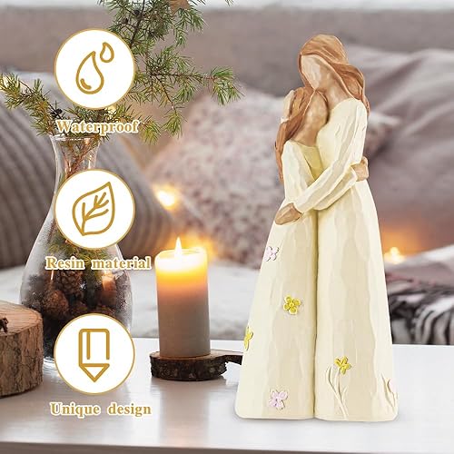 Figurines mère et Fille, Cadeaux pour la Fête des Mères, Cadeaux Chaleureux pour Maman de la Part de sa Fille, Resin Sculpture Peinte à la Main Anniversaire, Décoration d'Intérieur