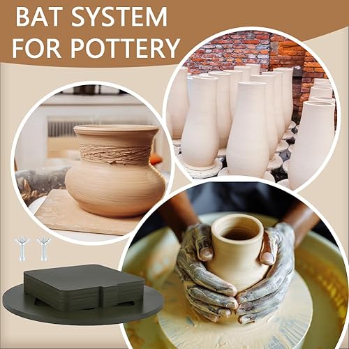 BENECREAT 30cm de Diamètre Chauves-Souris Noir de Roue de Poterie avec 6 chauves-Souris Intérieures Carré Battes de Lancer D'Argile Rondes Pré-Percées pour les Argile de Qui Tournent, Épaisseur de 9mm