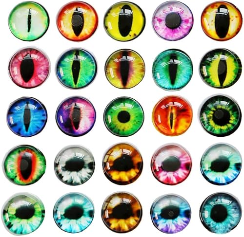 JIHUOO Œil de Dragon Rond en Verre Œil de Chat Yeux de sécurité Colorés Cabochons pour Scrapbooking Bijoux 30mm 20 pièces