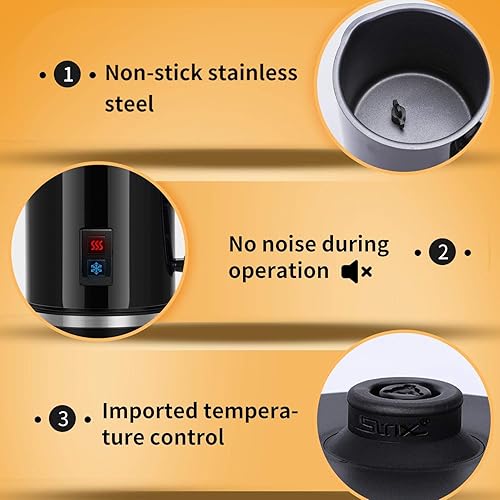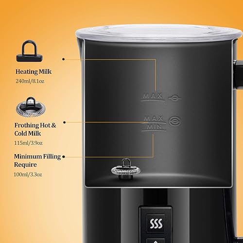 Aigostar Mousseur à lait Electrique 500W 240mL, 3 en 1 Mousse de Lait Chauffant automatique, Revêtement antiadhésif pour Cappucino, Café, Chocolat, Contrôle de Température, Fonction Silencieux, Nior