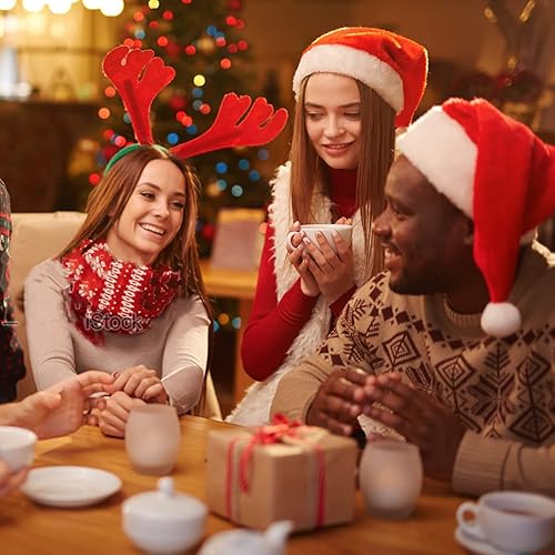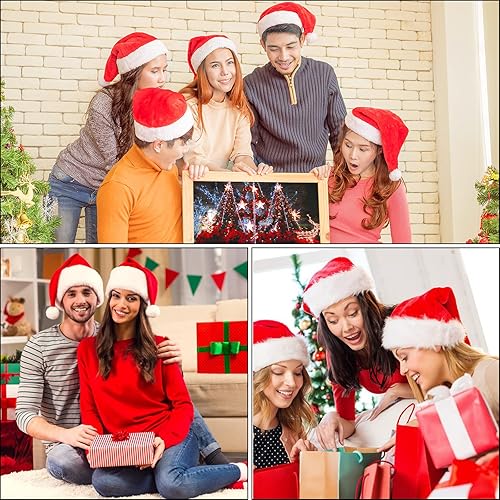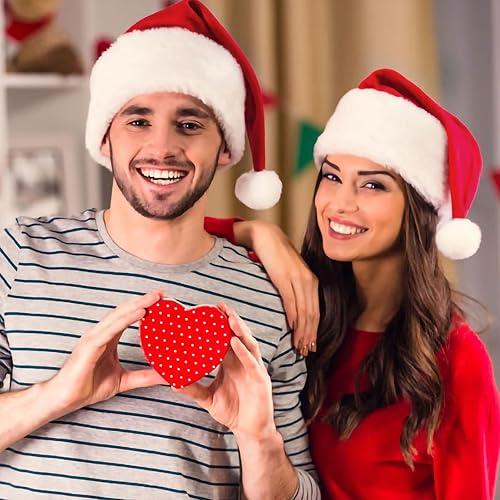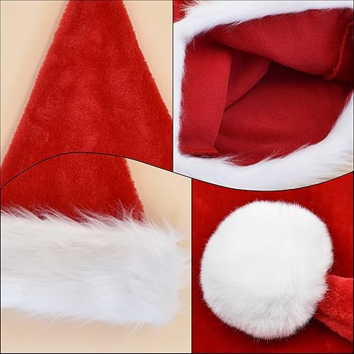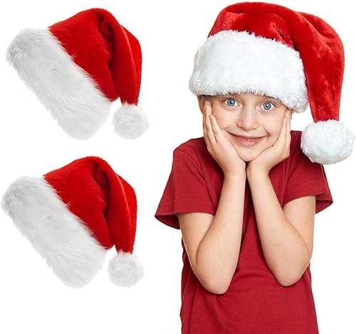 OPAHUTER Chapeau de Noël, 2 Pcs Rouge Bonnet de Père Noël en Peluche Confort Velours Unisexe pour Famille Nouvel An Fête Décorations Fournitures