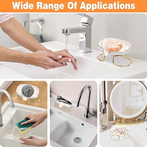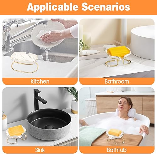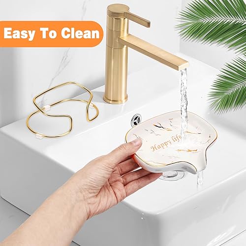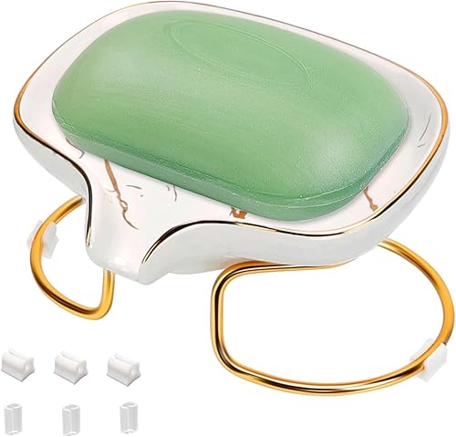 CAUTIOUS Porte-Savon Céramique Porte-Savon avec Drainage Support Ceramique avec Drain Séparé Auto Drainant Antidérapant pour Salle de Bain Lavabo Cuisine (Blanc)